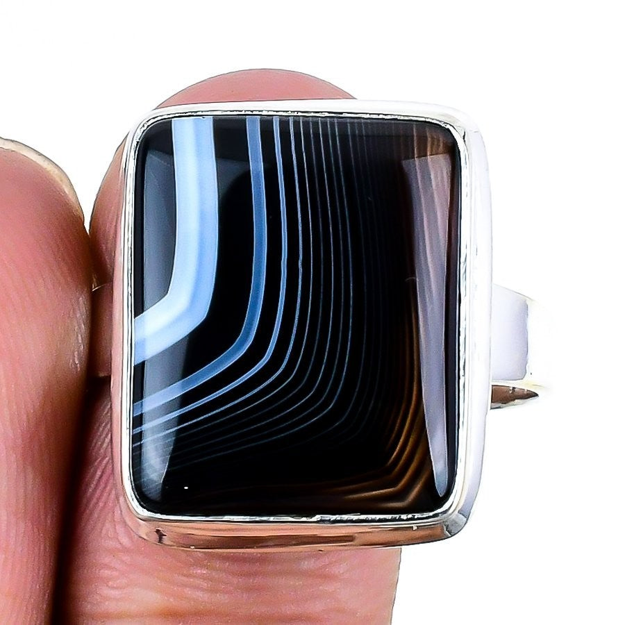 Natural Banded Agate Channel Set Statement Ring Jewelry Size 13 Sterling Silver
