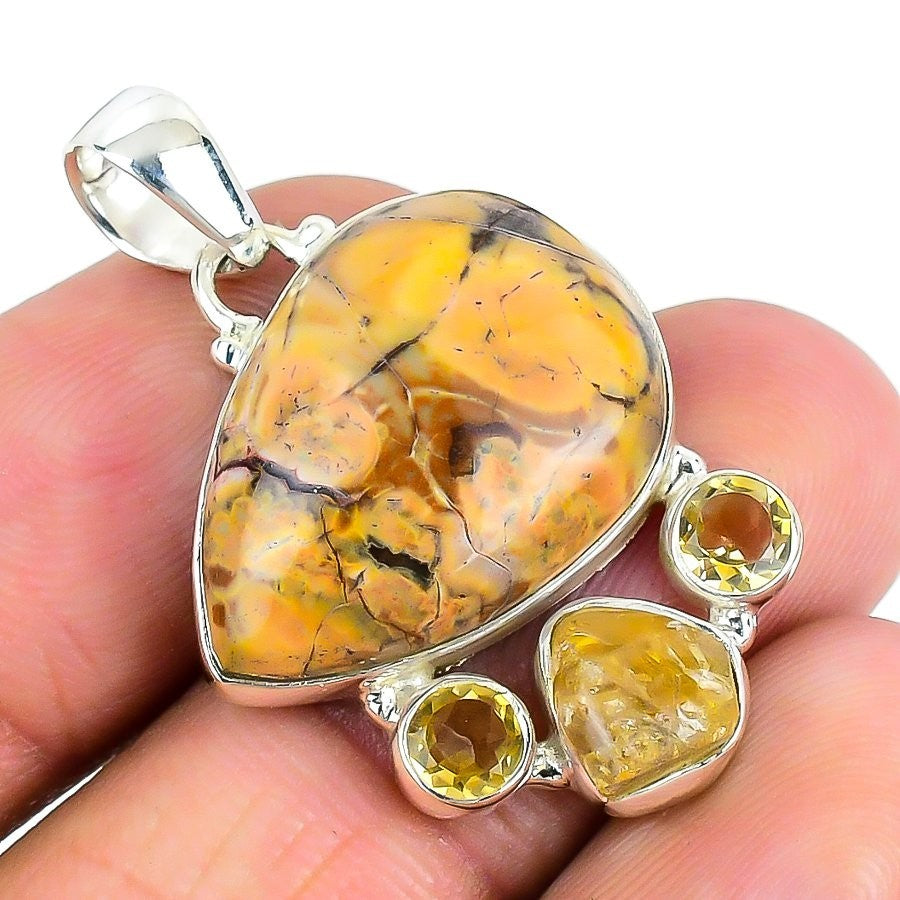 Natural Bird Eye Jasper Best Sisters Gift Pendant Jewelry Solid Sterling Silver