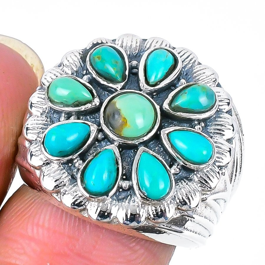 Natural Black Jack Turquoise Daughter Statement Ring Solid Sterling Silver US 7