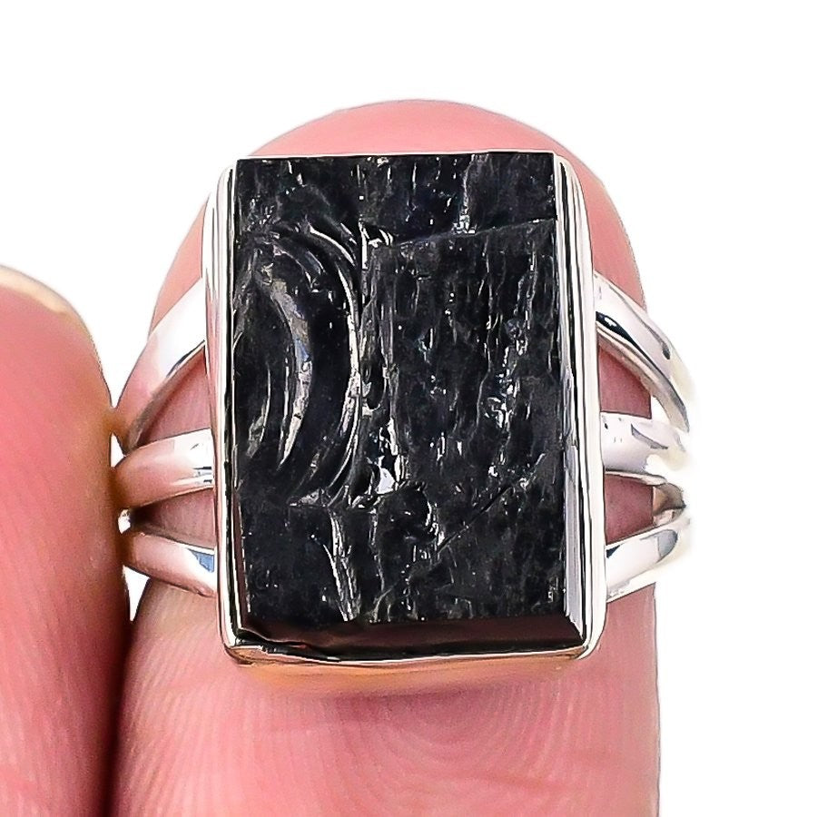 Elegant Natural Black Kyanite Engagement New Statement Ring