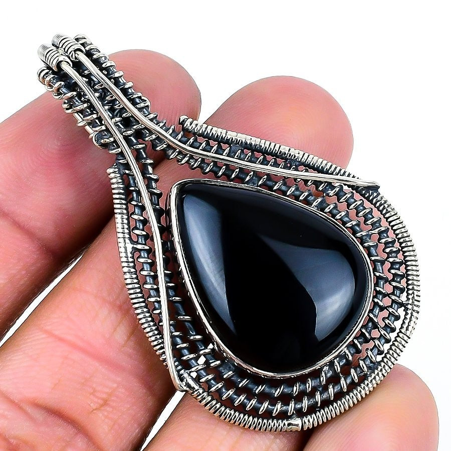 Natural Black Onyx 925 Sterling Silver Root Chakra Elegant Sister Unique Pendant