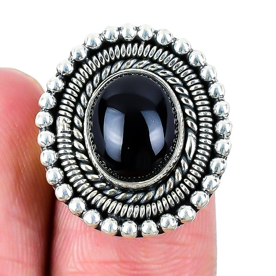 Natural Black Onyx 925 Sterling Silver Statement Root Chakra Ring Jewelry Size 7