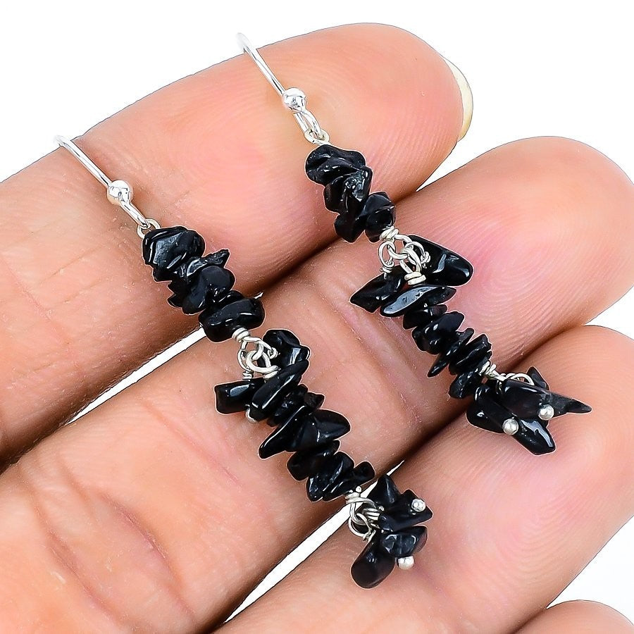 Elegant Natural Black Onyx Druzy Wife Drop Boho in 925 Sterl