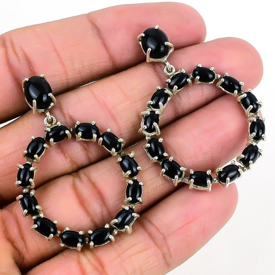 Elegant Natural Black Onyx New Dangling Wedding Sisters in 9
