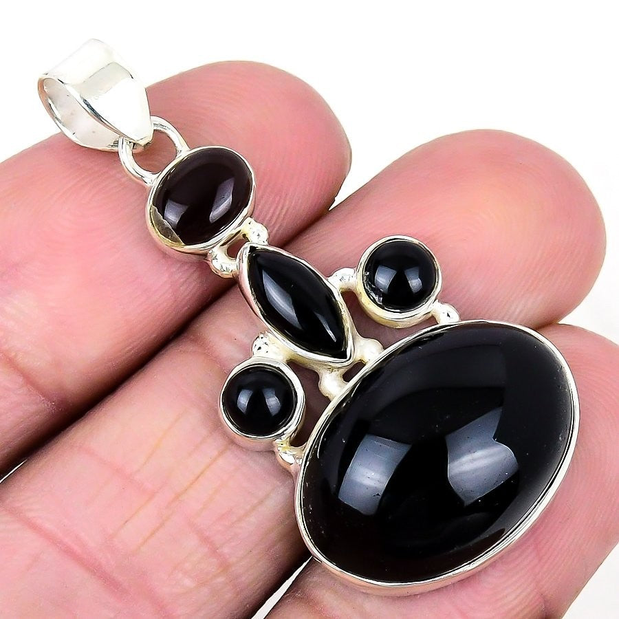 Natural Black Onyx Solid Silver Engagement Channel Set Unique Pendant Jewelry