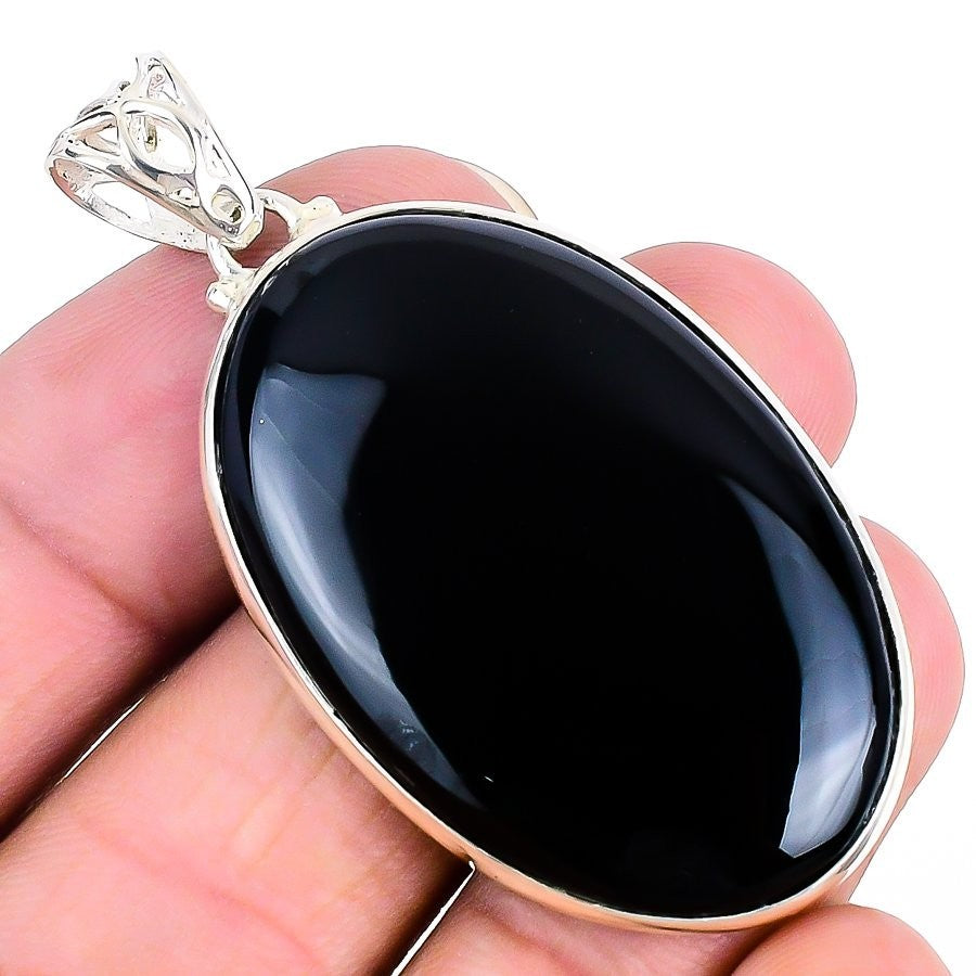 Natural Black Onyx Solid Silver Wife Bezel Daughters Day Ethnic Pendant Jewelry