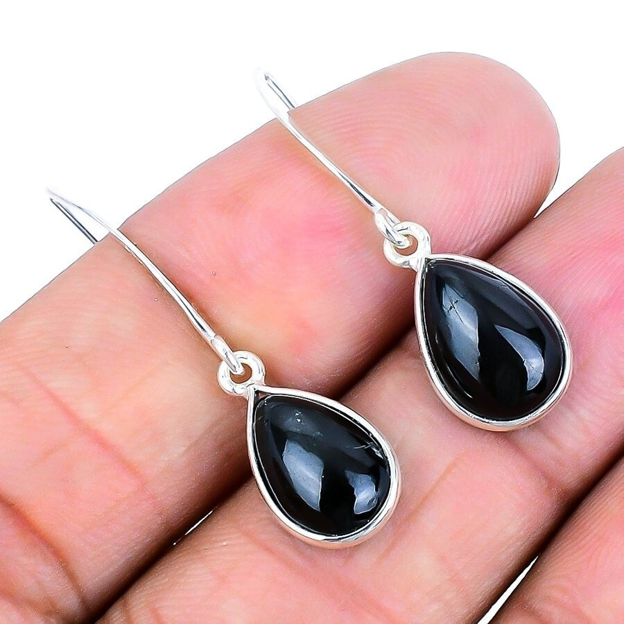 Elegant Natural Black Onyx Solid Sterling Silver Dangle in 9