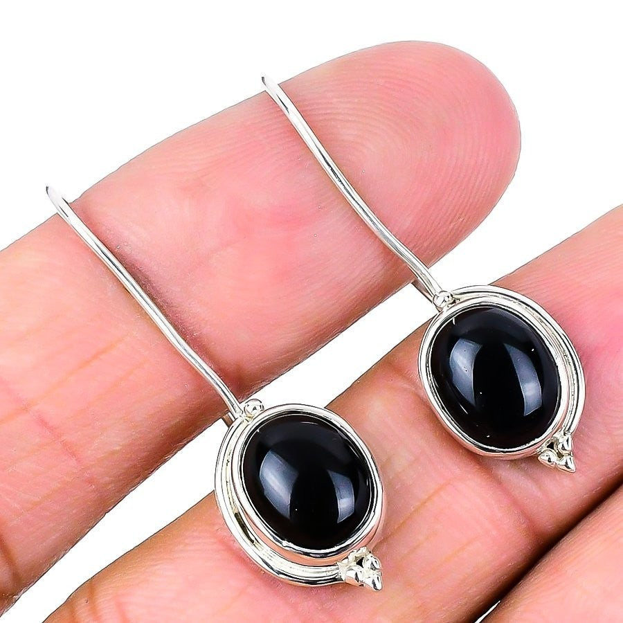 Natural Black Onyx Solid Sterling Silver Mother Drop Dangle New Earrings Jewelry
