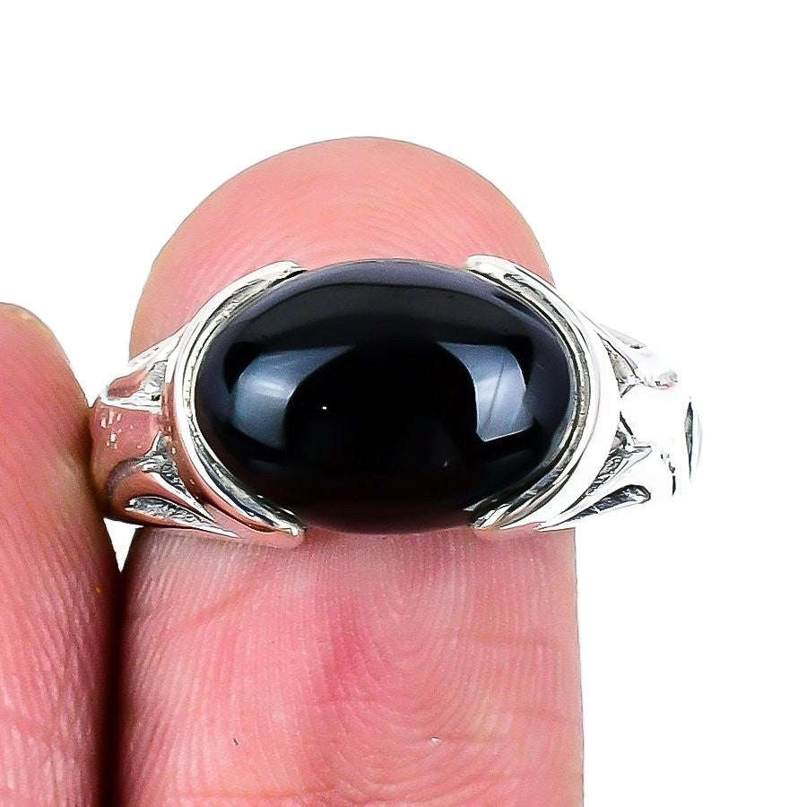 Natural Black Onyx Sterling Silver Anniversary Engagement Statement Ring US 9