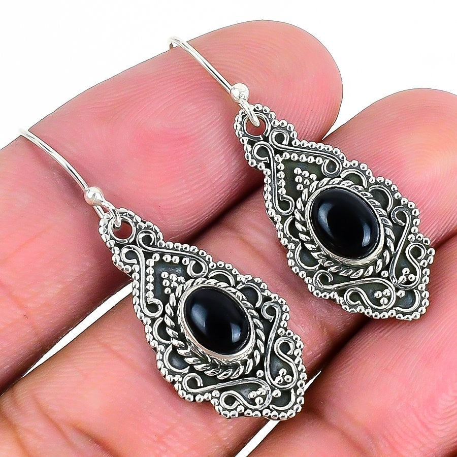 Natural Black Onyx Sterling Silver New Drop Best Daughters Gift Earrings Jewelry