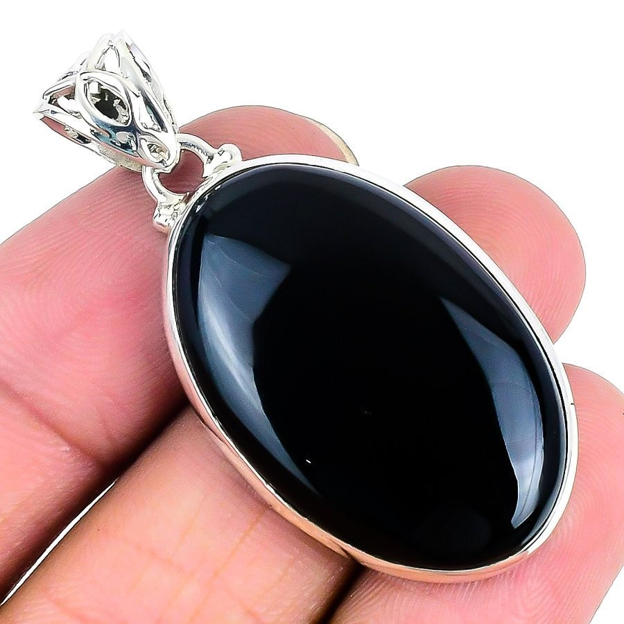 Natural Black Onyx Wedding Bezel Best Daughters Gift Pendant Jewelry 925 Silver