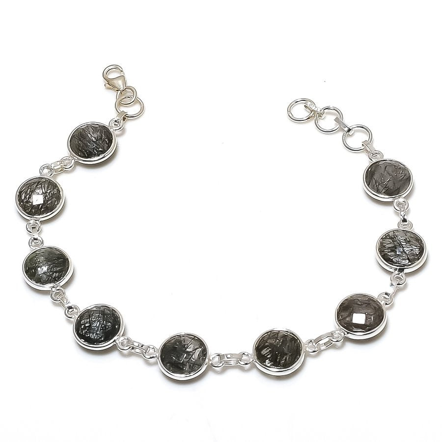 Elegant Natural Black Rutile 925 Silver Anniversary Mother i