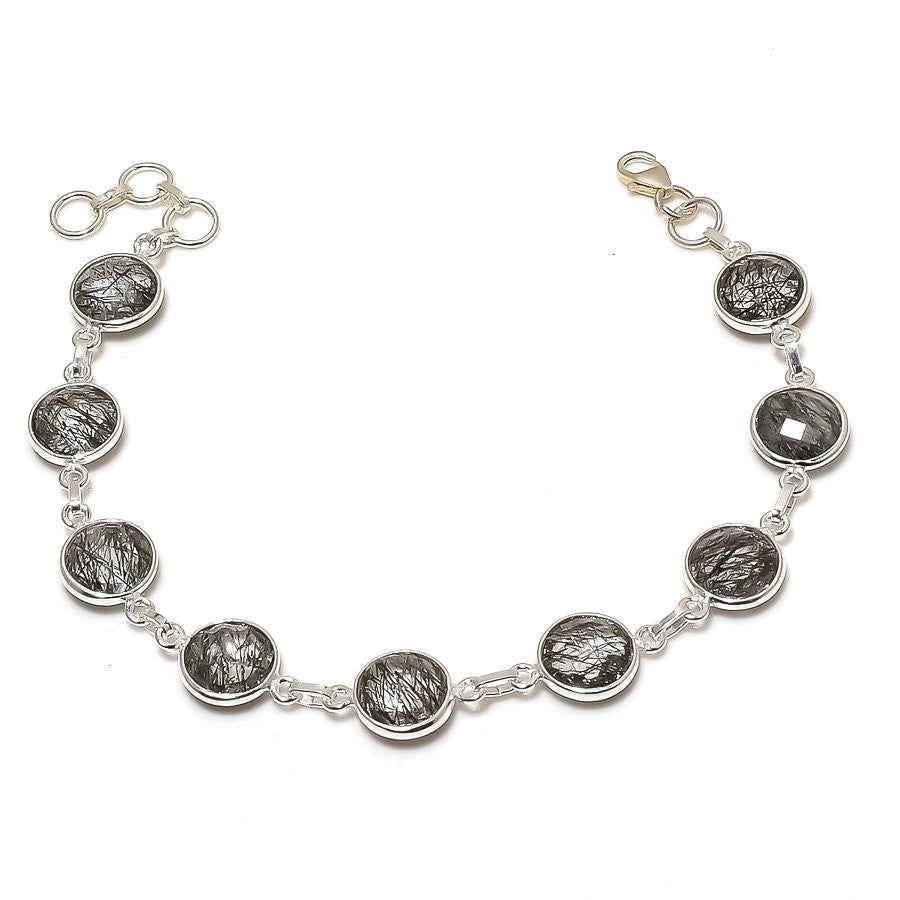 Natural Black Rutile 925 Silver Handcrafted Sister Unique Chain New Bracelet
