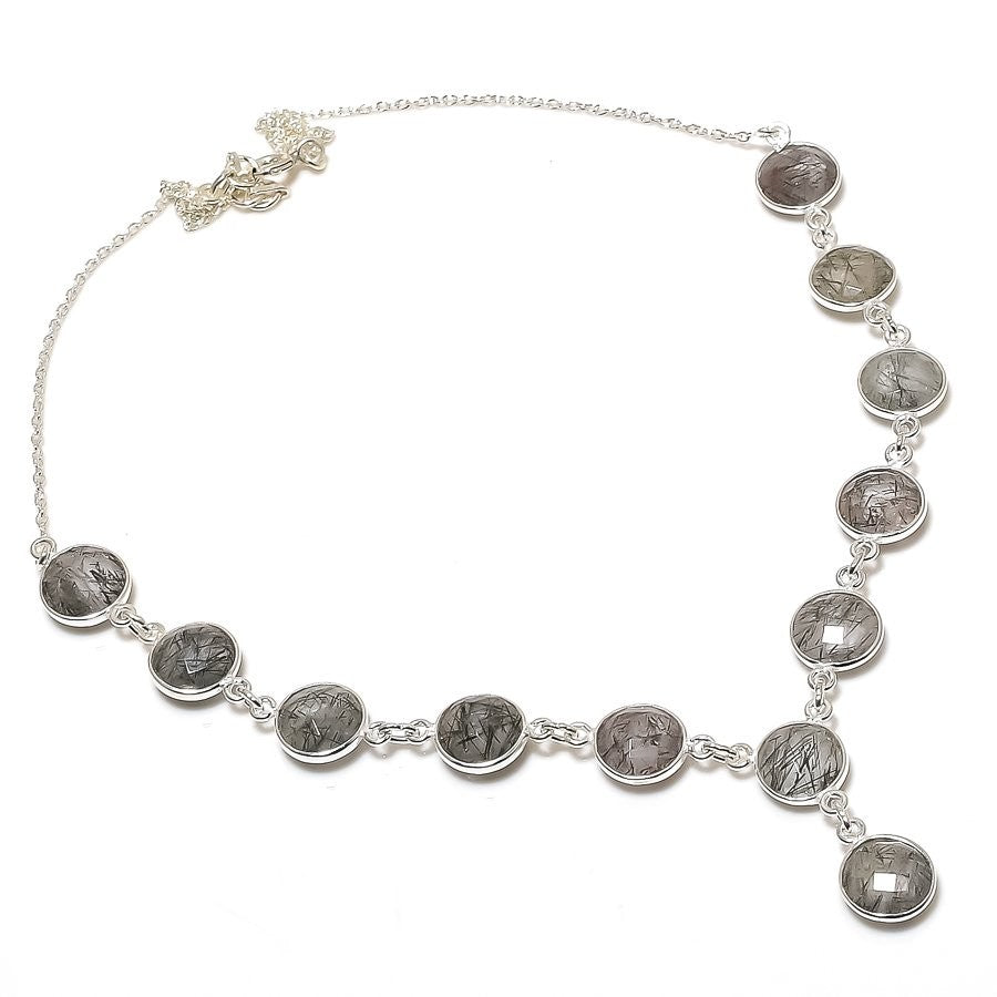Natural Black Rutile 925 Solid Silver Daughter Unique Chain New Necklace Jewelry