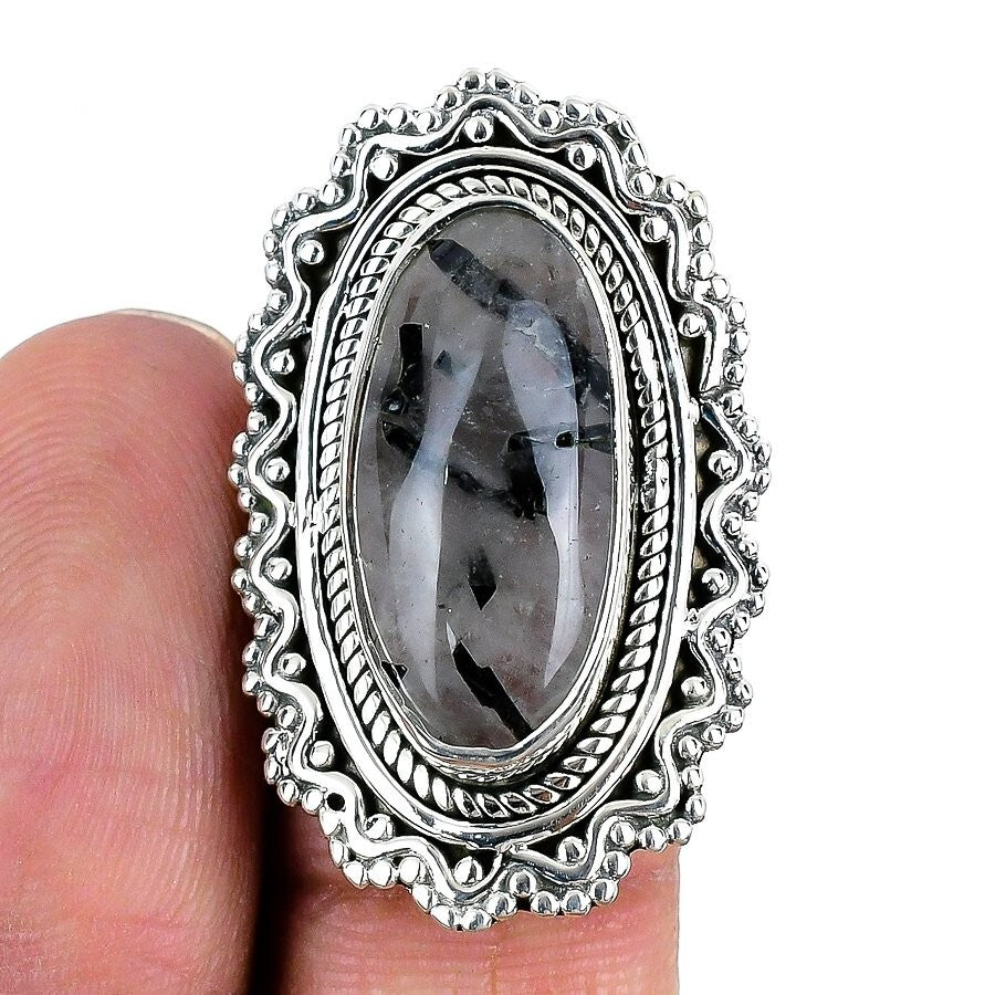 Natural Black Rutile 925 Sterling Silver Bezel Statement Unique Boho Sister Ring