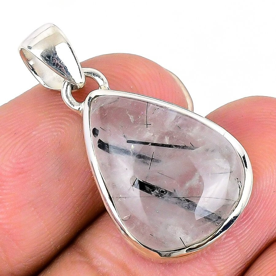 Natural Black Rutile 925 Sterling Silver Wife Bezel Wedding New Pendant Jewelry