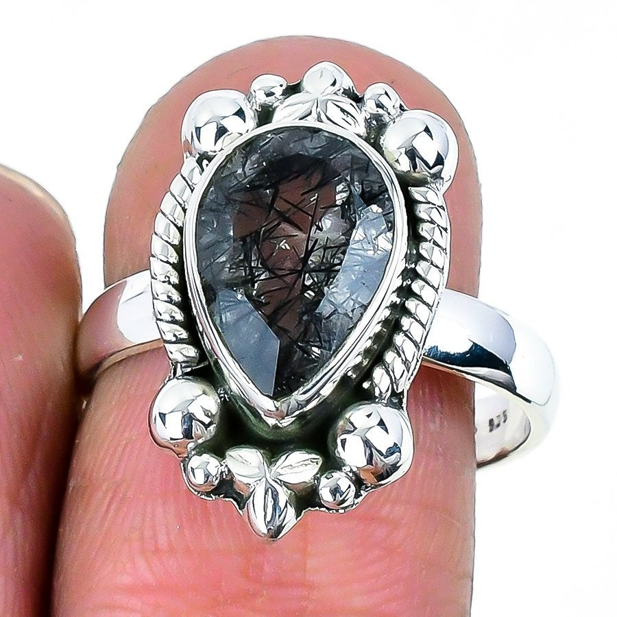 Natural Black Rutile Faceted 925 Silver New Statement Daughters Day Ring Jewelry