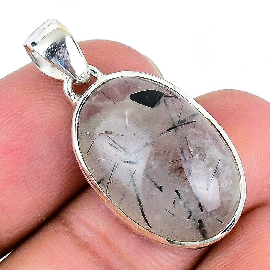Natural Black Rutile Solid Silver Handmade Daughter Gift Bezel Wedding Pendant