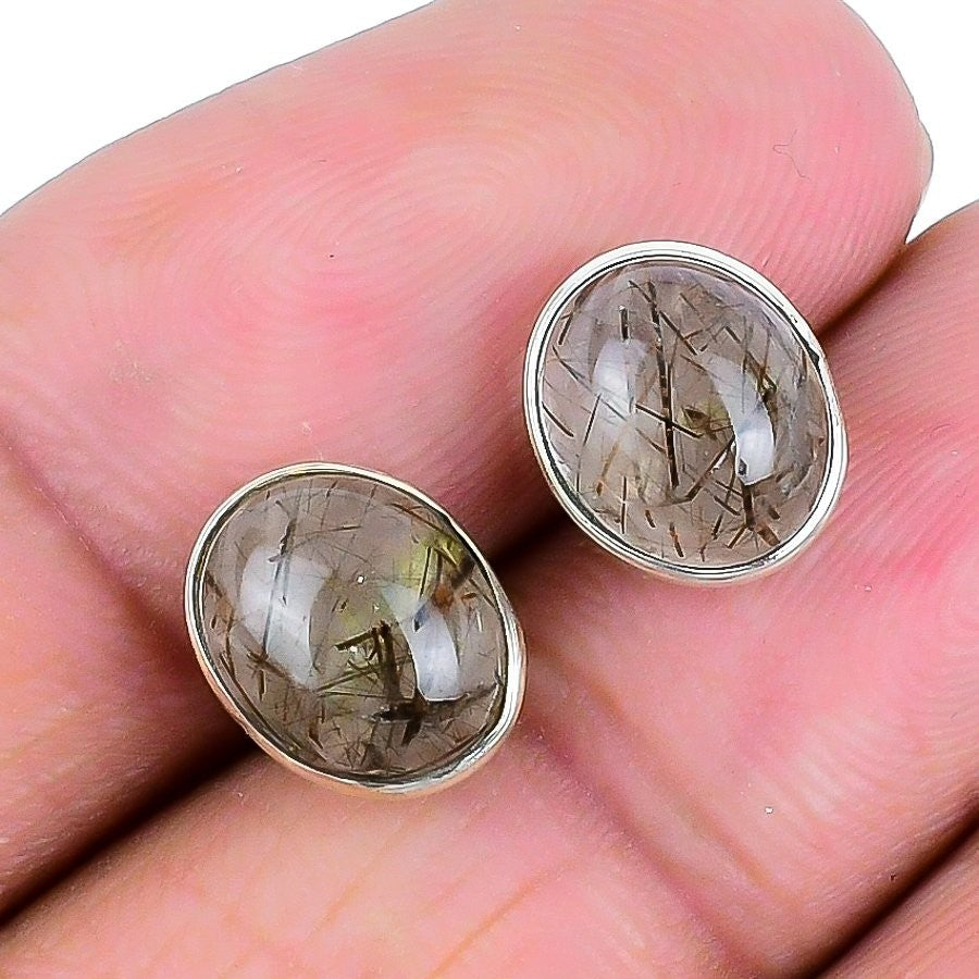 Elegant Natural Black Rutile Solid Sterling Silver Stud in 9