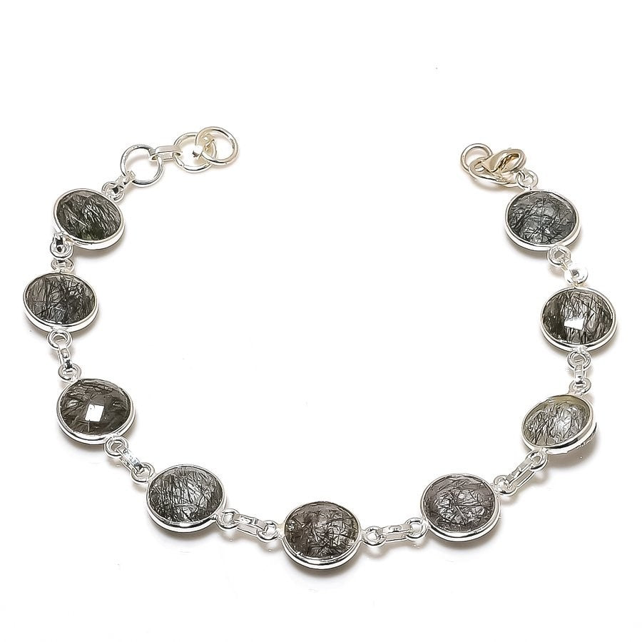 Natural Black Rutile Wedding Trendy Chain Boho Bracelet Jewelry Sterling Silver