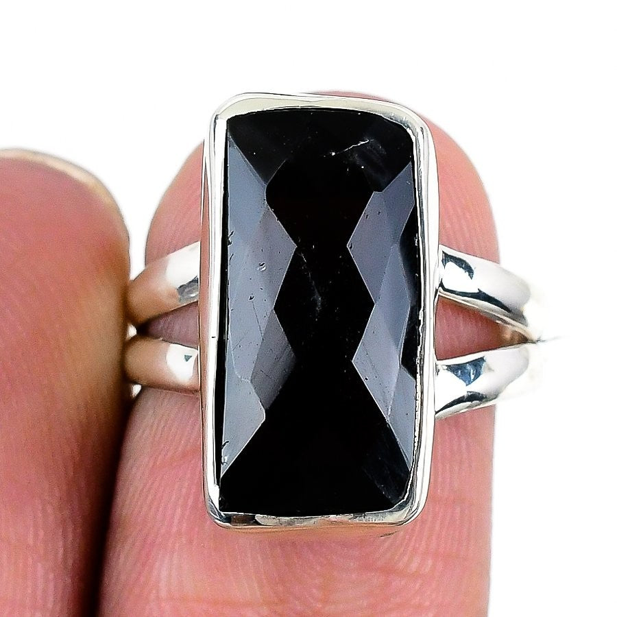 Natural Black Spinel 925 Solid Silver Daughter Wedding Statement Bezel Ring US 7