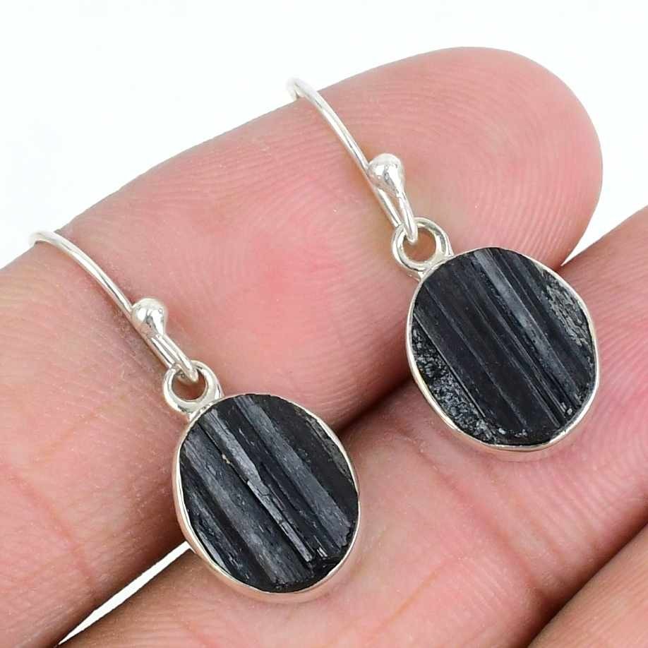 Natural Black Tourmaline Druzy 925 Sterling Silver Drop Wedding Earrings Jewelry
