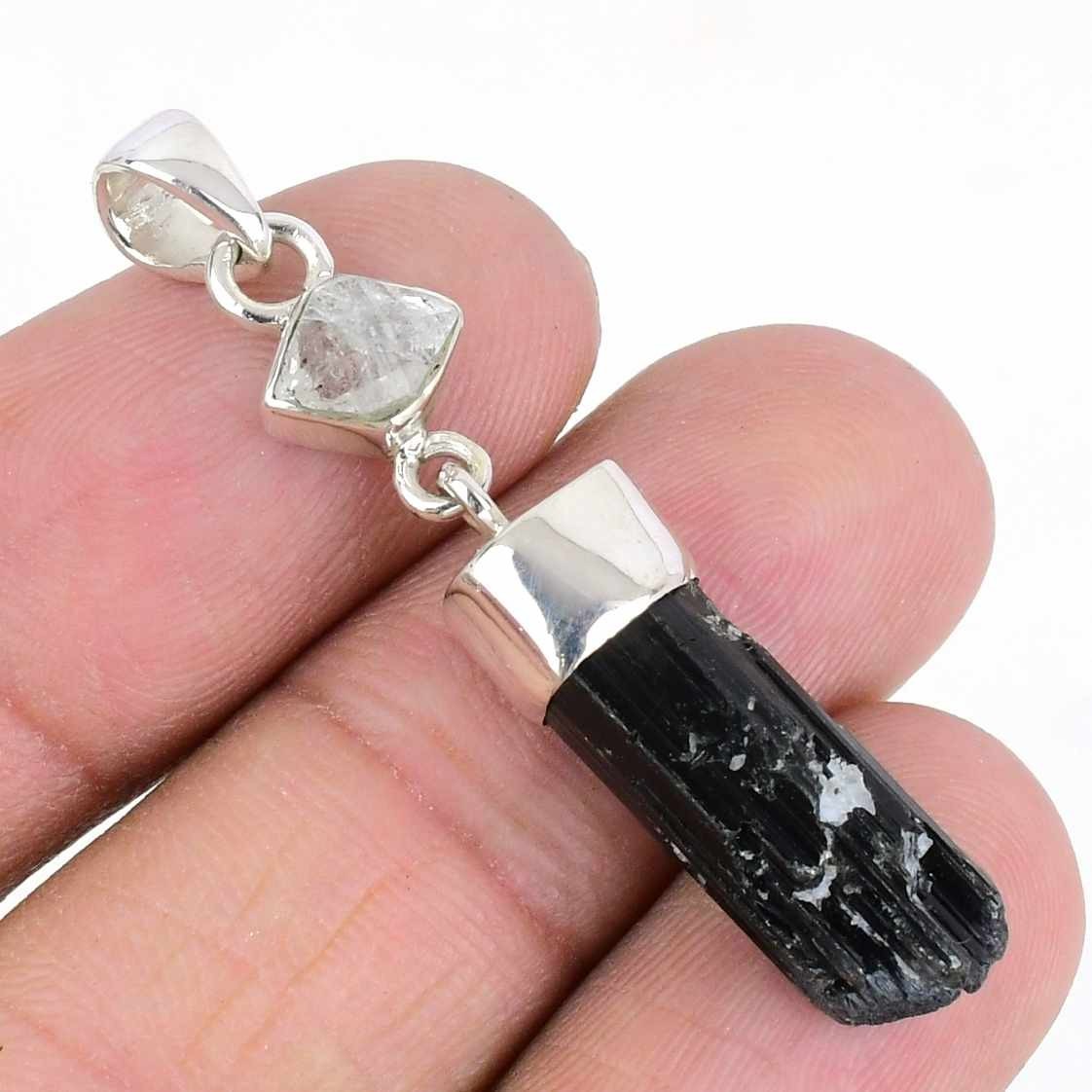 Natural Black Tourmaline & Herkimer 925 Silver Mother Wedding Pendant Jewelry