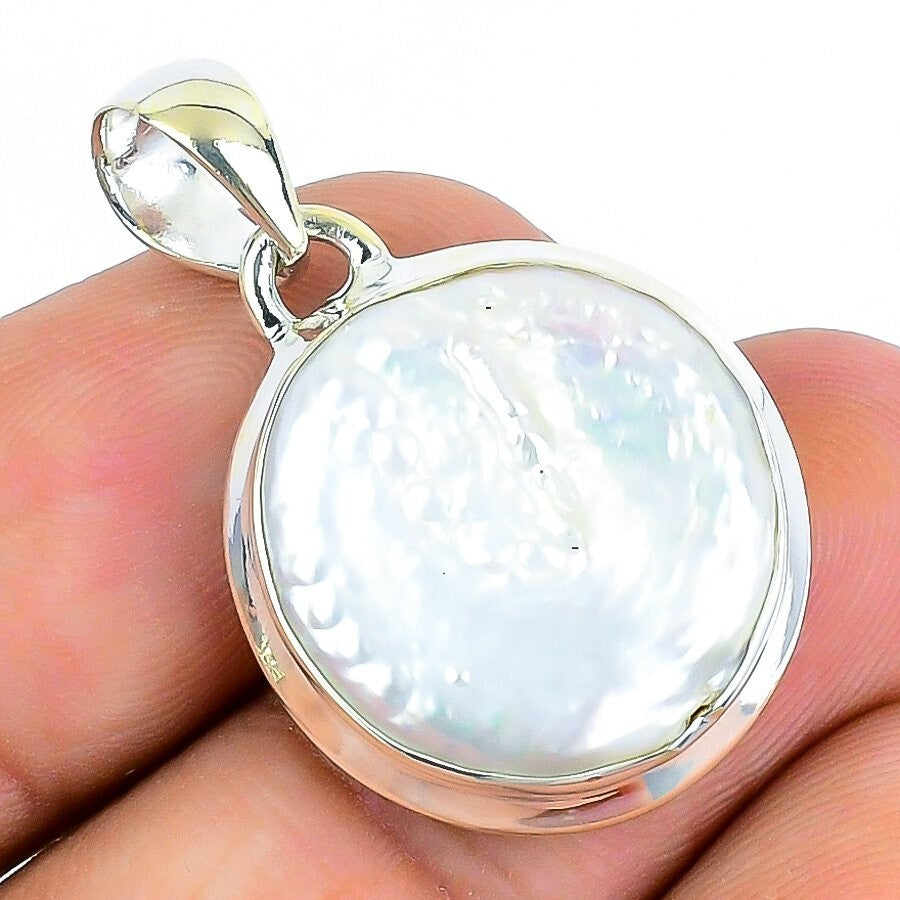 Natural Blister Pearl Elegant Wedding Channel Set Pendant Jewelry Solid Silver