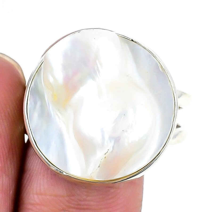 Natural Blister Pearl Solid Silver Handcrafted Anniversary Statement Ring US 10