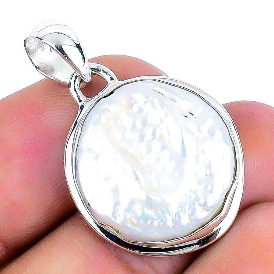 Natural Blister Pearl Sterling Silver Mother Elegant Artisan Channel Set Pendant