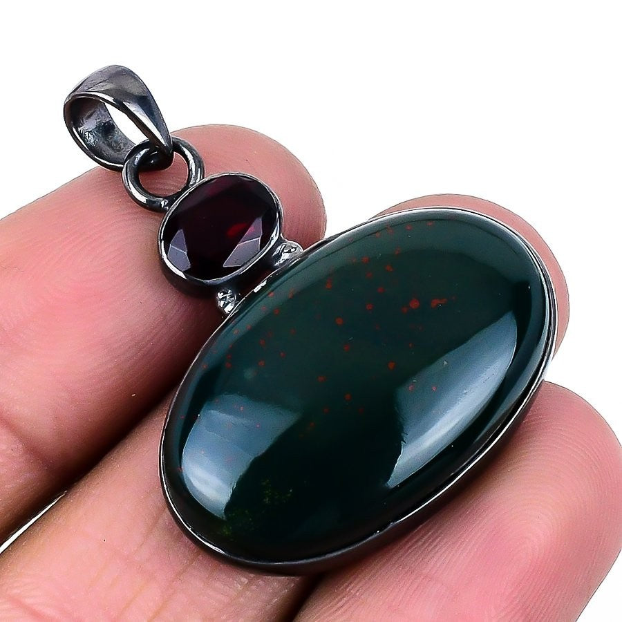 Natural Bloodstone 925 Sterling Silver Anniversary Unique Mother Pendant Jewelry