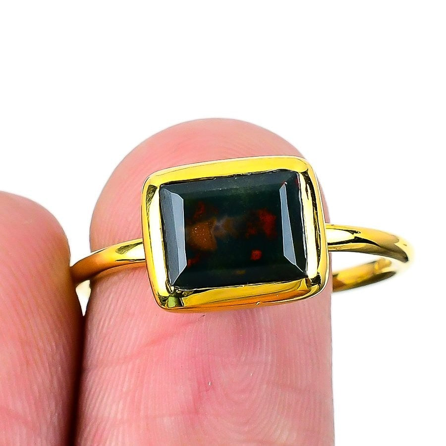 Natural Bloodstone Statement Wife Birthday March Ring 925 Sterling Silver US 10