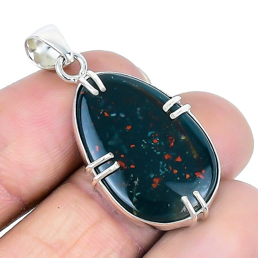 Natural Bloodstone Sterling Silver Daughter Handmade Elegant New Pendant Jewelry