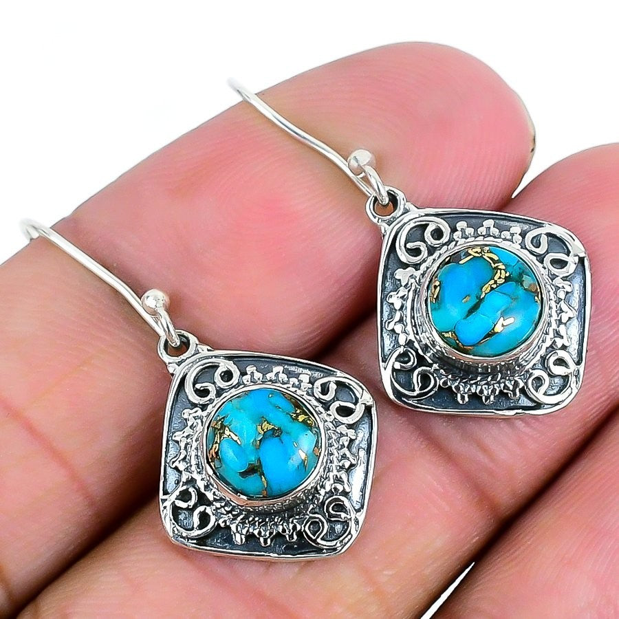Natural Blue Copper Turquoise 925 Sterling Silver Wife Dangle Earrings Jewelry