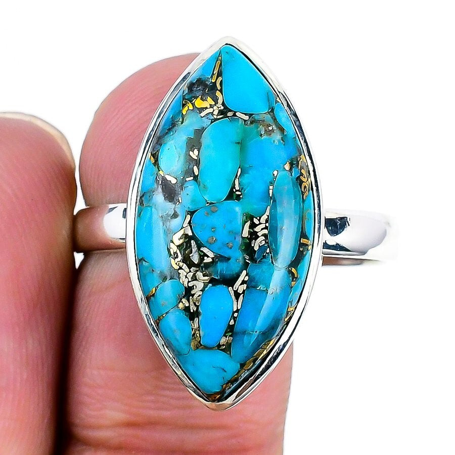 Natural Blue Copper Turquoise Sterling Silver Statement New Ring Jewelry Size 14