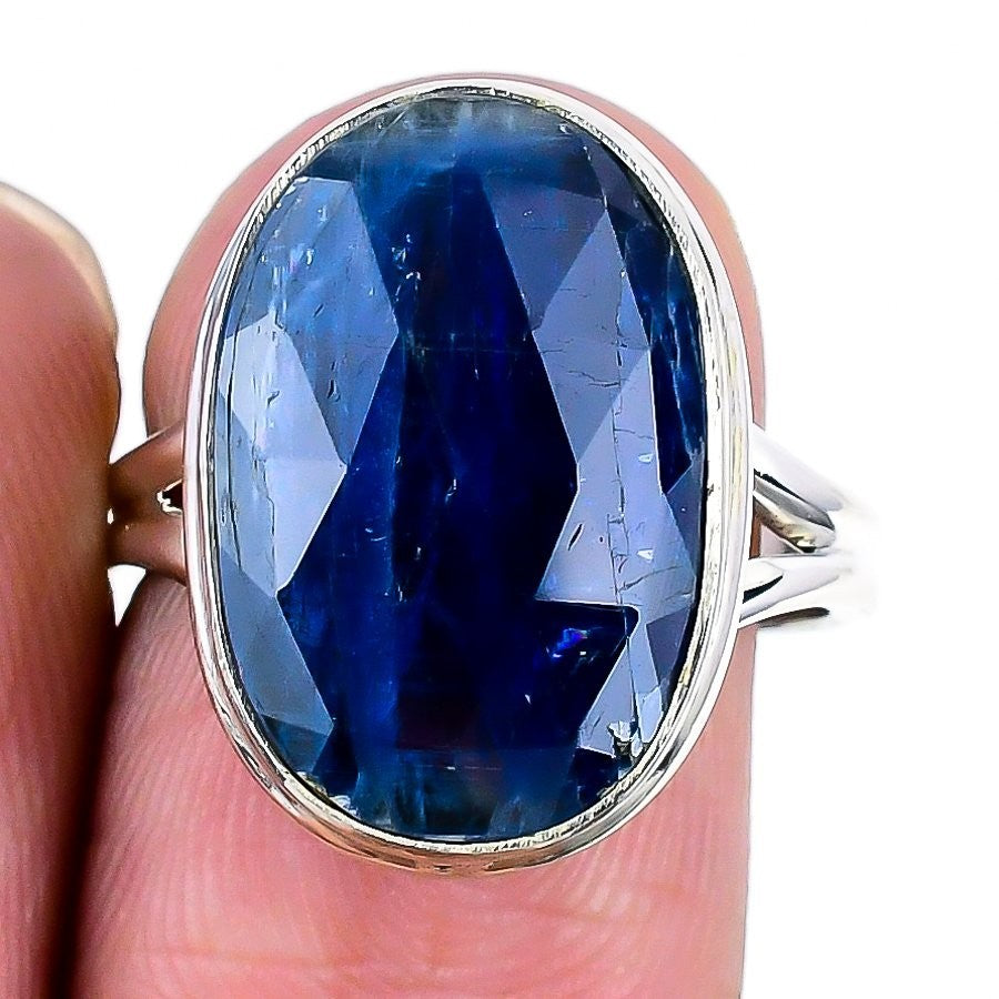 Natural Blue Kyanite 925 Solid Silver Channel Set Birthday Statement Ring US 7.5