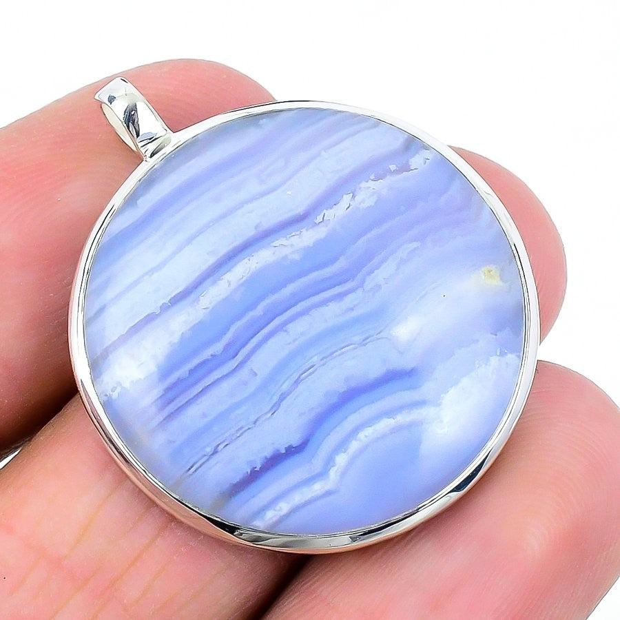 Elegant Natural Blue Lace Agate 925 Silver Handmade in 925 S