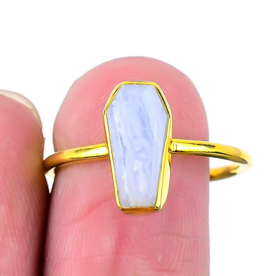 Natural Blue Lace Agate 925 Solid Silver Mother Cluster Third Eye Chakra Ring