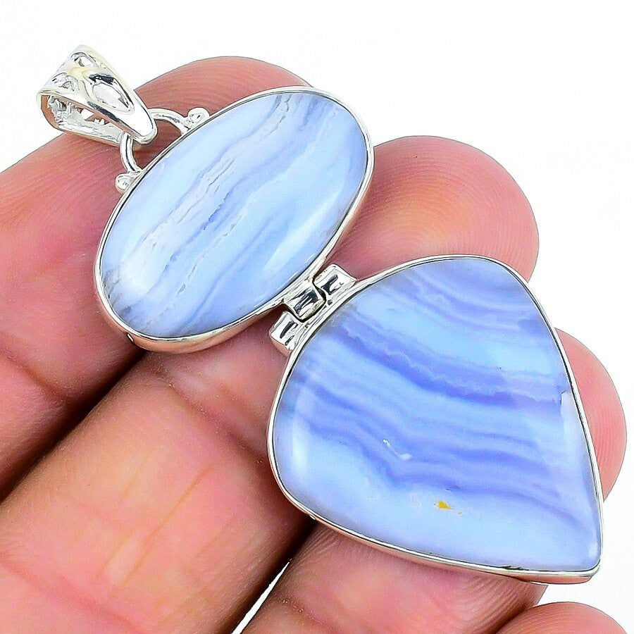 Elegant Natural Blue Lace Agate 925 Sterling Silver in 925 S