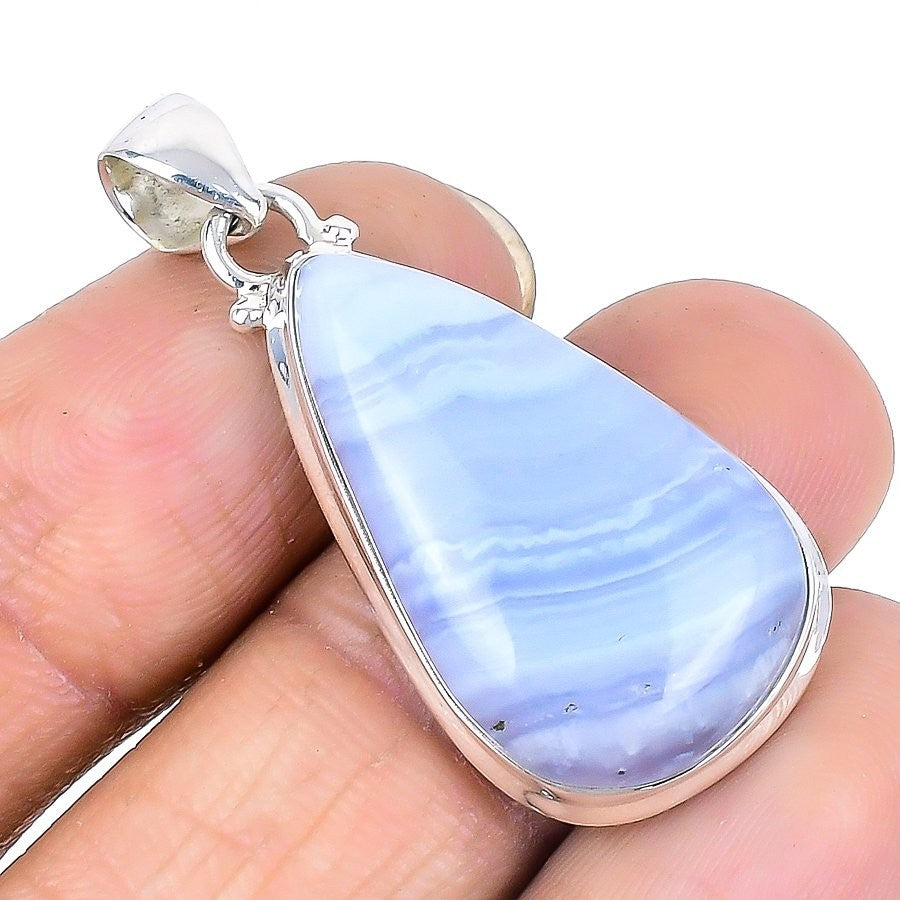 Natural Blue Lace Agate Solid Silver Best Daughters Gift Mother Pendant Jewelry