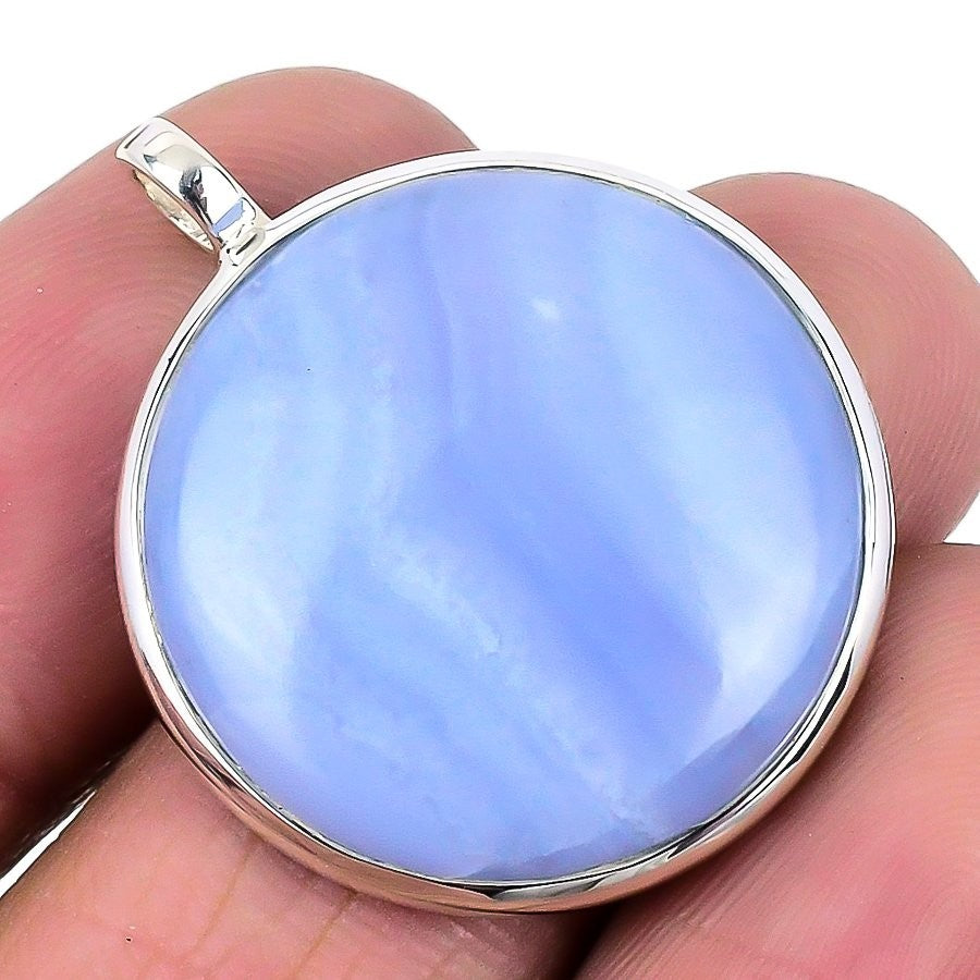 Natural Blue Lace Agate Solid Silver Friendship Day Handmade New Pendant Jewelry