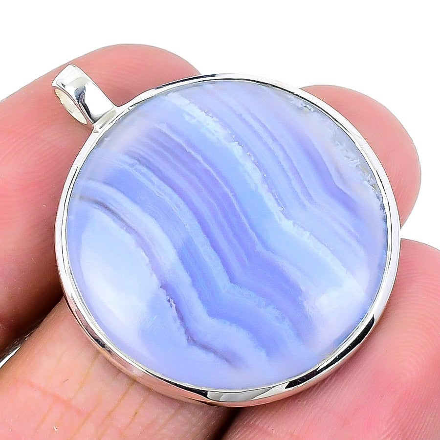 Natural Blue Lace Agate Solid Sterling Silver Anniversary Ethnic Artisan Pendant