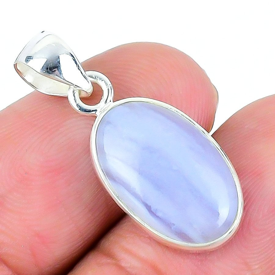 Natural Blue Lace Agate Wedding Artisan Mother New Pendant 925 Sterling Silver