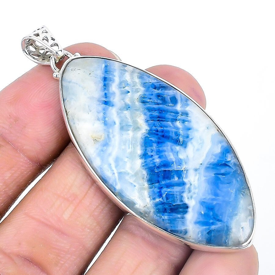 Natural Blue Scheelite 925 Solid Silver Mother Unique Elegant Pendant Jewelry