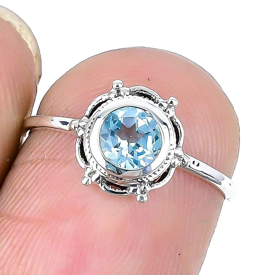 Natural Blue Topaz Sister Statement Engagement Ring Jewelry Size 6 925 Silver