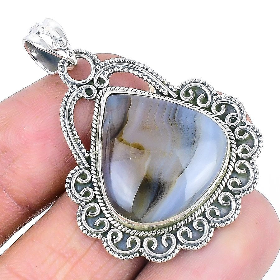 Natural Botswana Agate Daughters Day Sister Trendy Pendant Solid Sterling Silver