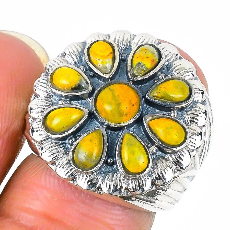 Natural Bumble Bee Jasper 925 Solid Silver Statement Friendship Day Ring US 6