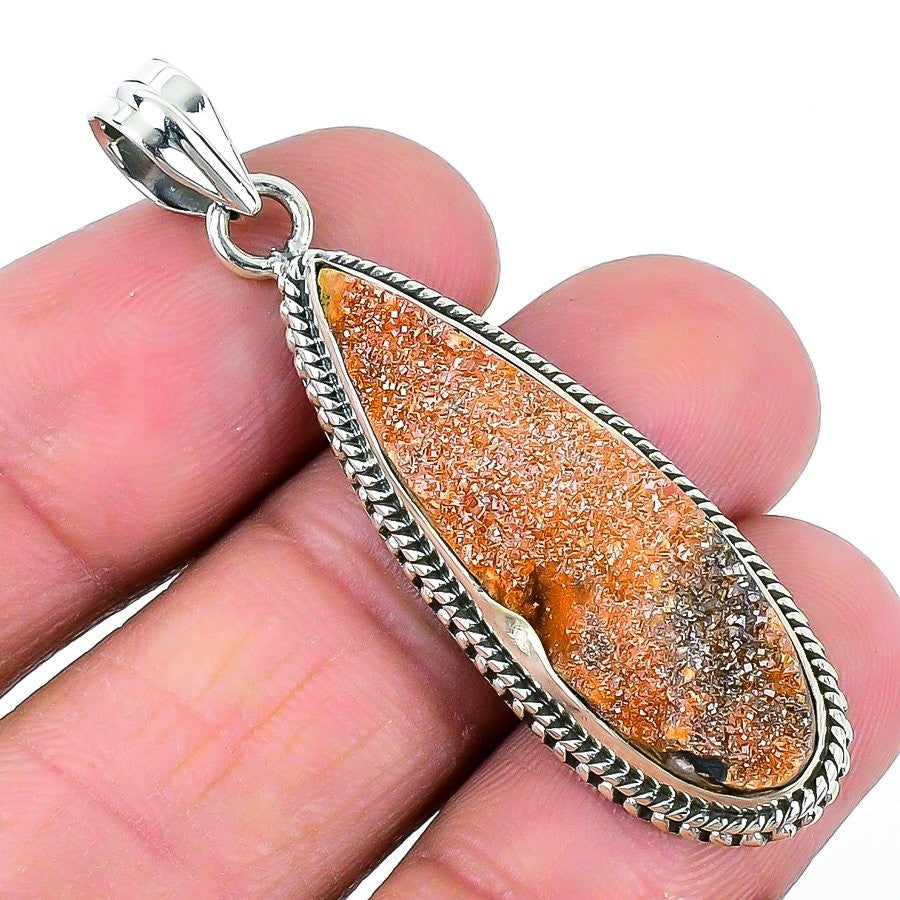 Natural Cavensite Druzy Sterling Silver Artisan Handcrafted Engagement Pendant