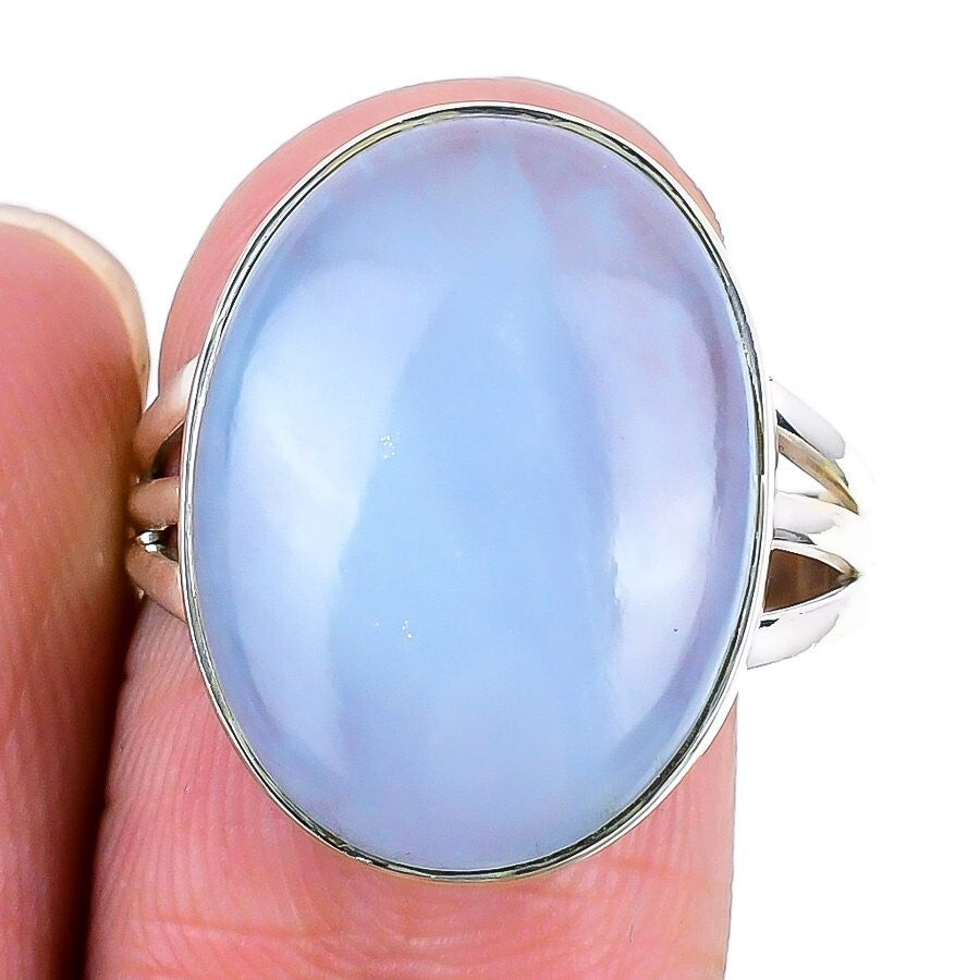 Elegant Natural Chalcedony 925 Silver Unique Statement Chann