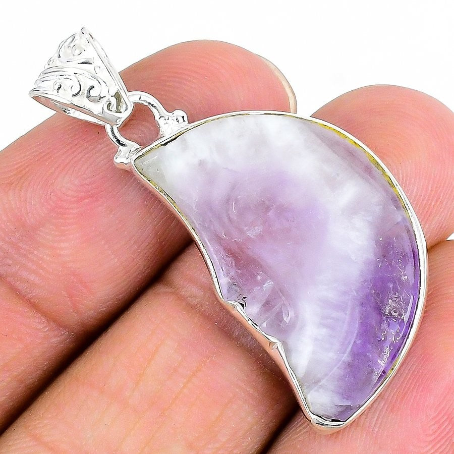 Natural Chevron Amethyst moonsface Sterling Silver Bezel Sisters Gift Pendant